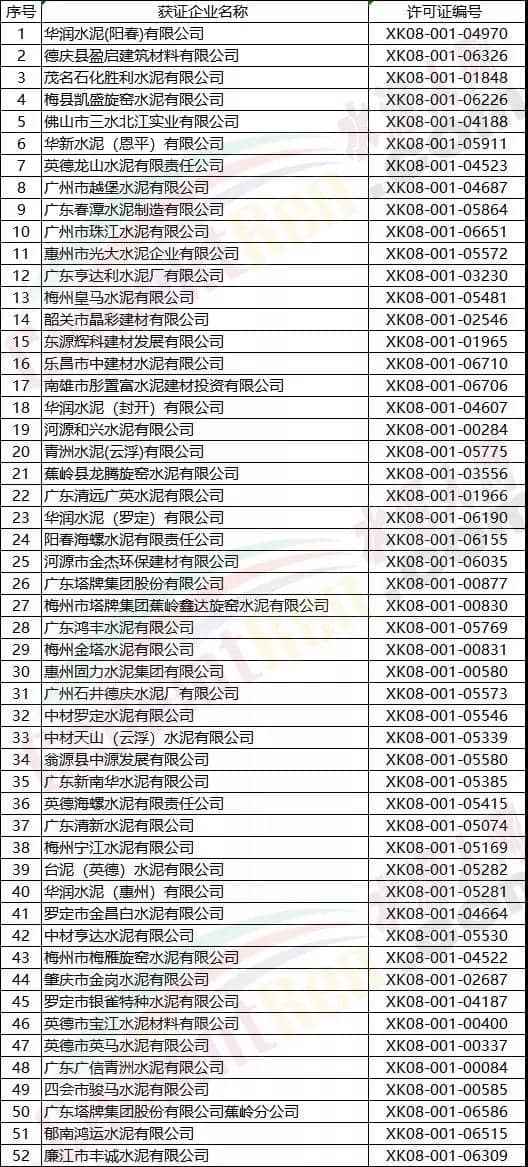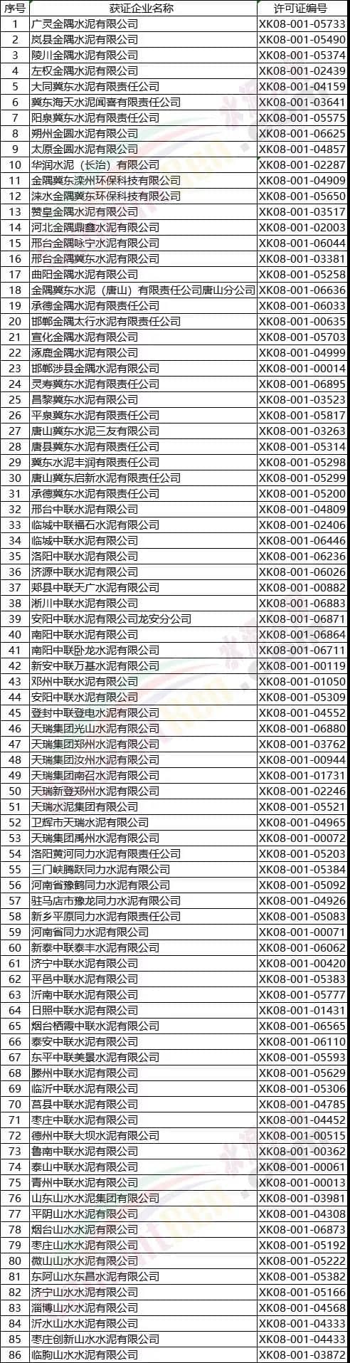 來(lái)源:市場(chǎng)監(jiān)管總局生產(chǎn)許可證辦公室浙江省部分熟料生產(chǎn)企業(yè)名單