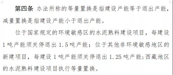 水泥人網(wǎng)小編注意到,于2018年1月1日開(kāi)始實(shí)施的《辦法》中明確減量置換是指建設(shè)產(chǎn)能小于退出產(chǎn)能。位于國(guó)家規(guī)定的環(huán)境敏感區(qū)的水泥熟料建設(shè)項(xiàng)目,每建設(shè)1噸產(chǎn)能須關(guān)停退出1.5噸產(chǎn)能;位于其他非環(huán)境敏感地區(qū)的新建項(xiàng)目,每建設(shè)1噸產(chǎn)能須關(guān)停退出1.25噸產(chǎn)能;西藏地區(qū)的水泥熟料建設(shè)項(xiàng)目執(zhí)行等量置換。