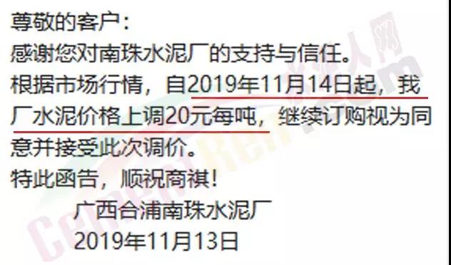 淄博魯晟建材有限公司通知自11月13日早8時(shí)起所有水泥出廠價(jià)格上調(diào)10元/噸。