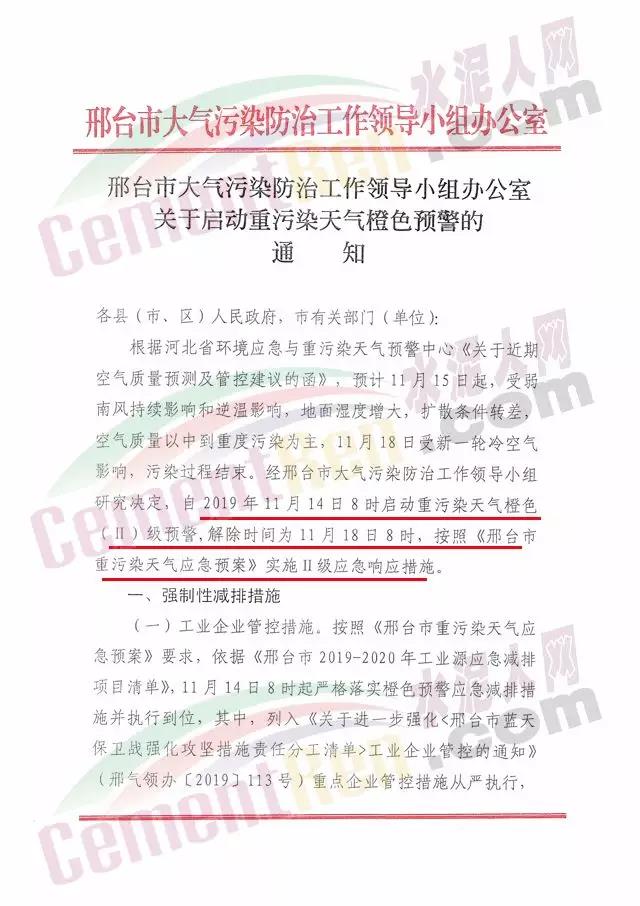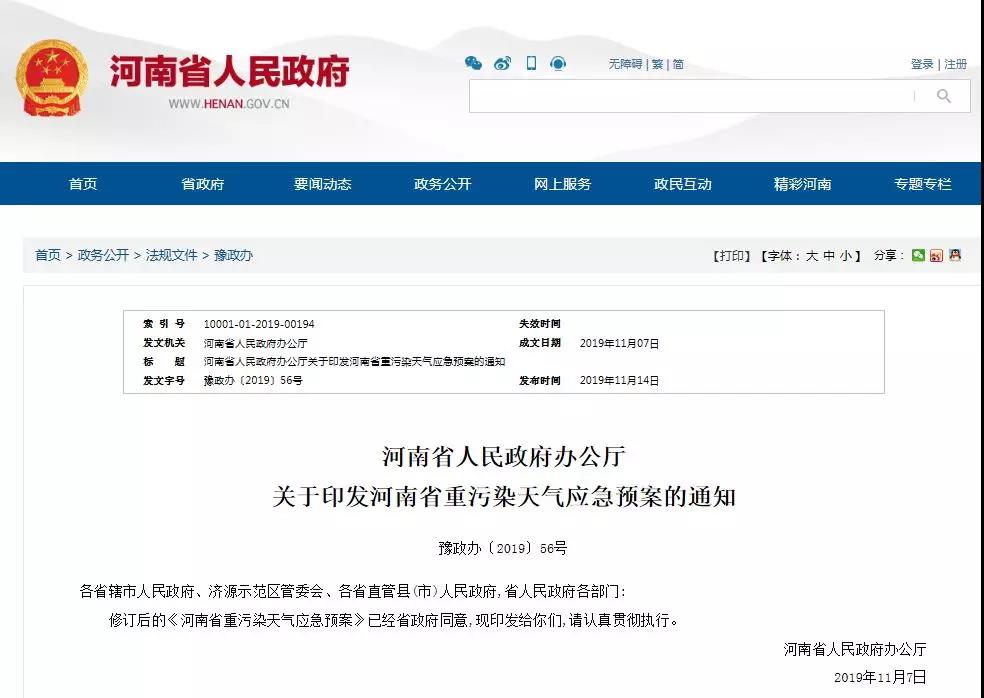 據(jù)了解,昨日(11月14日),河南省人民政府發(fā)布《關(guān)于印發(fā)河南省重污染天氣應(yīng)急預(yù)案的通知》稱:當預(yù)測可能出現(xiàn)上述重污染天氣時,應(yīng)當按空氣質(zhì)量預(yù)報結(jié)果上限確定預(yù)警級別。當全省6個及以上相鄰的省轄市(濟源產(chǎn)城融合示范區(qū))同時達到橙色或紅色預(yù)警條件時,啟動該級別的省級預(yù)警。當發(fā)布橙色預(yù)警時,啟動Ⅱ級應(yīng)急響應(yīng)。根據(jù)減排需要,在橙色及以上預(yù)警期間采取統(tǒng)一應(yīng)急減排措施。對新興產(chǎn)業(yè)、戰(zhàn)略性產(chǎn)業(yè)和保障民生的企業(yè),應(yīng)當根據(jù)實際情況采取減排措施,盡量避免對正常生產(chǎn)生活的影響。對承擔協(xié)同處置城市生活垃圾或危險廢物、涉及居民供暖等民生保障類企業(yè),在保障任務(wù)完成的同時,核定最大允許生產(chǎn)負荷,實施“以量定產(chǎn)”或“以熱定產(chǎn)”。