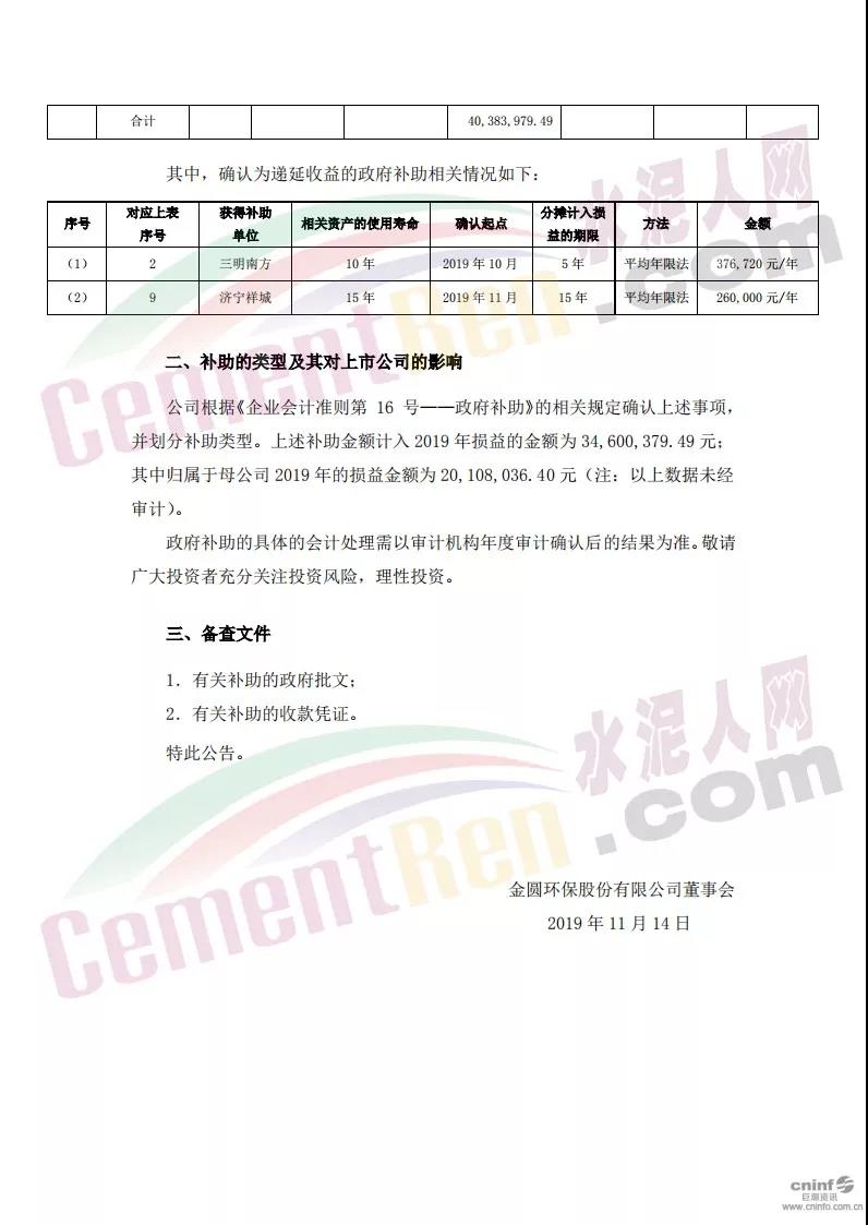這四項補貼項目共40,383,979.49 元,其中工業(yè)發(fā)展基金共10579044.00元,增值稅退稅共14747609.49元,生態(tài)文明專項資金共3900000元,產(chǎn)業(yè)發(fā)展專項資金共1883600元。具體明細如下: