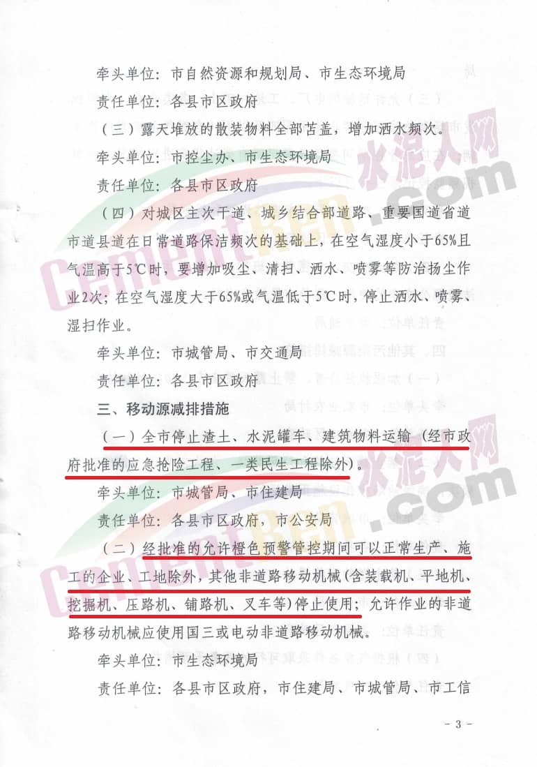 除應(yīng)急搶險外,全市所有房屋建筑、拆遷、市政、道路、水利、綠化、通訊等施工工地停止石方作業(yè)、建筑拆除、噴漆涂刷、護坡噴漿、混凝土攪拌等;礦山、砂石料廠、石材廠、石板廠等露天作業(yè);所有企業(yè)嚴(yán)禁露天堆放散裝物料。具體如下: