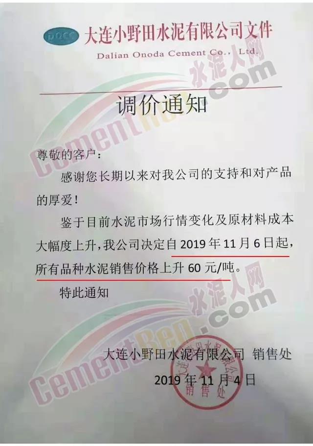 據(jù)水泥人網(wǎng)了解,目前遼中南區(qū)域部分企業(yè)庫存量在80%左右,因物流查超限加嚴(yán)區(qū)域內(nèi)標(biāo)載車輛緊缺,企業(yè)熟料及水泥運輸受限。企業(yè)負(fù)責(zé)人稱,有貨運不出去。一次性大漲60元/噸,價格高達900元/噸遼寧大連主導(dǎo)企業(yè)小野田水泥及大水集團發(fā)調(diào)價通知上調(diào)水泥價格。11月4日大連小野田水泥有限公司銷售處調(diào)價通知稱,鑒于目前水泥市場行情變化及原材料成本大幅度上升公司決定 自11月6日起,所有品種水泥上調(diào)60元/噸。據(jù)水泥人網(wǎng)了解,大連小野田水泥此前PII52.5水泥報價840元/噸,此次價格一次性上60元/噸,漲價后高達900元/噸。