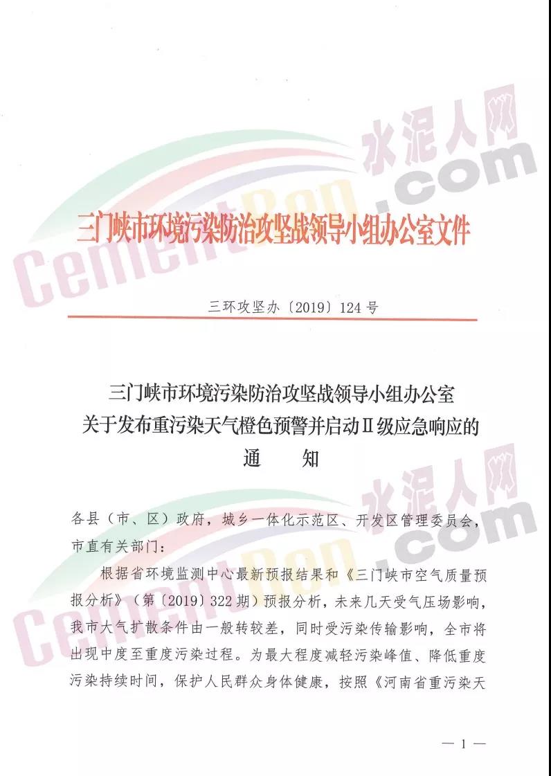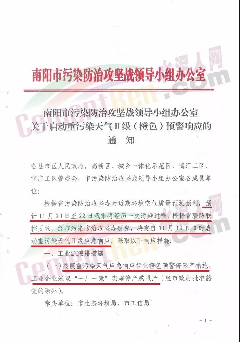 以許昌市為例,當(dāng)?shù)匚廴痉乐喂?jiān)戰(zhàn)領(lǐng)導(dǎo)小組通知 自11月19日0時(shí)啟動(dòng)重污染天氣橙色,實(shí)施II級(jí)應(yīng)急響應(yīng)措施。停產(chǎn)類企業(yè)包括水泥熟料企業(yè)(經(jīng)批準(zhǔn)協(xié)同處置,危廢、污泥等涉及民生的熟料生產(chǎn)線11月19日0時(shí)停產(chǎn)到位)、水泥粉磨企業(yè)、礦渣微粉企業(yè)、水泥制品企業(yè),商砼企業(yè)等。