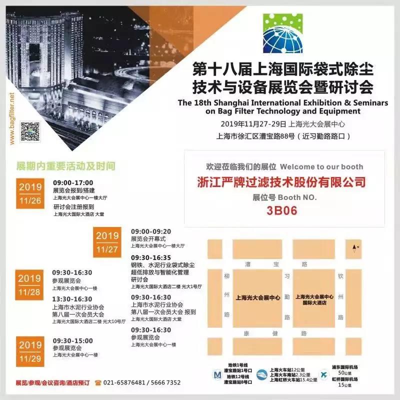 ▲嚴(yán)牌成為“垃圾焚燒技術(shù)與裝備國家工程實驗室”成員單位 據(jù)水泥人網(wǎng)了解,在不斷加強技術(shù)研發(fā)水平的提升,企業(yè)的技術(shù)研發(fā)實力已經(jīng)達到了國內(nèi)先進水平,嚴(yán)牌股份也先后被認(rèn)定為國家高新技術(shù)企業(yè),浙江省企業(yè)技術(shù)中心、浙江省創(chuàng)新型示范中小企業(yè),浙江省“隱形冠軍”企業(yè),浙江省管理創(chuàng)新試點企業(yè),浙江省清潔生產(chǎn)階段性成果企業(yè),浙江省高新技術(shù)企業(yè)研究開發(fā)中心,浙江工業(yè)名牌產(chǎn)品等。延伸閱讀: 11月27日-29日,嚴(yán)牌股份將參與“第十八屆上海國際袋式除塵技術(shù)與裝備展覽會”,誠邀您蒞臨現(xiàn)場參觀指導(dǎo)!展位號:3B06展會地點:上海光大會展中心(參展信息見下圖)