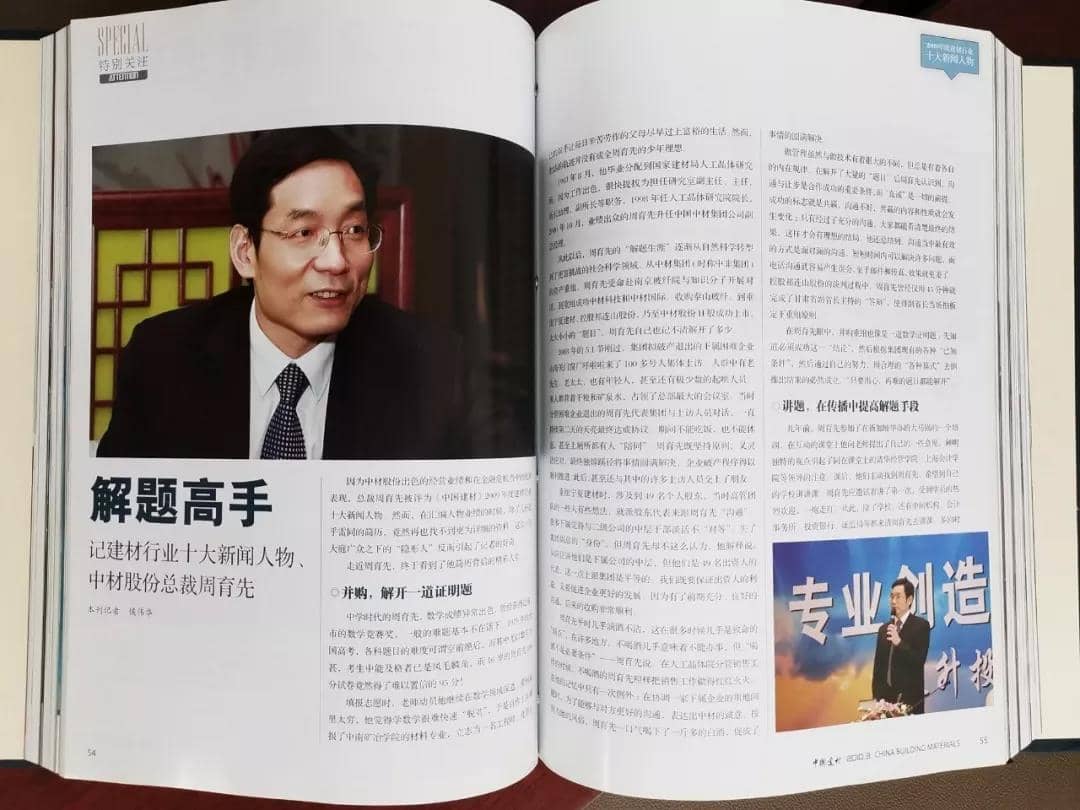 11月中旬,63歲的企業(yè)家宋志平卸任中國(guó)建材集團(tuán)董事長(zhǎng)的消息“刷爆朋友圈”。同時(shí),人們也對(duì)接棒者周育先產(chǎn)生了好奇。不少讀者聯(lián)系本刊編輯部,詢問關(guān)于他的情況。周育先曾在建材行業(yè)耕耘27載,擔(dān)任過中非人工晶體研究院院長(zhǎng)、中國(guó)中材集團(tuán)副總經(jīng)理、中材股份有限公司總裁。2010年12月調(diào)入被稱為“國(guó)投二號(hào)”的國(guó)新控股擔(dān)任重要職務(wù)。10年前,周育先作為中材集團(tuán)內(nèi)部重組的成功實(shí)施者,憑借在應(yīng)對(duì)金融危機(jī)中的出色表現(xiàn)和帶領(lǐng)中材股份完成優(yōu)異的經(jīng)營(yíng)業(yè)績(jī),被《中國(guó)建材》評(píng)為2009年度建材行業(yè)十大新聞人物。下面就讓我們通過刊載于《中國(guó)建材》2010年第3期的人物通訊《解題高手——記建材行業(yè)十大新聞人物、 中材股份總裁周育先》,以及2011年第5期的人物速寫《儒雅睿智的央企老總周育先》,來了解一下這位低調(diào)、儒雅、睿智,有著豐富“并購(gòu)”“重組”經(jīng)驗(yàn)的管理者曾經(jīng)的“人生軌跡”——