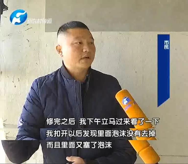 隨后楊先生便讓維修人員進(jìn)行了第一次維修。在維修后,楊先生發(fā)現(xiàn)里面的泡沫沒有去掉,而且里面又塞了泡沫,于是他再次要求樓盤項目部解決此事。