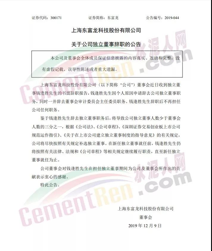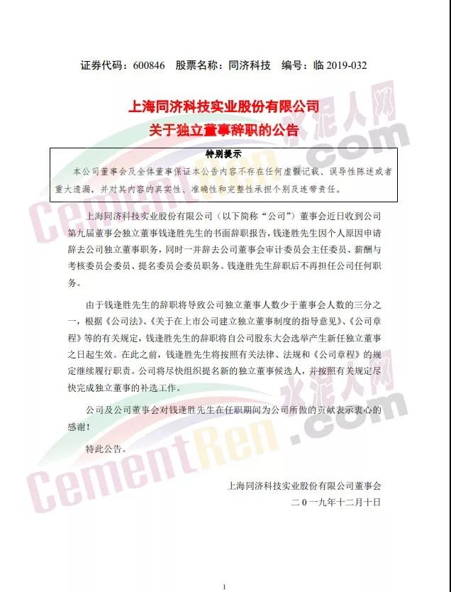 12月8日9日,同濟科技(600846.SH)、中國建材(03323.HK)、東富龍(6.990, -0.07, -0.99%)(300171.SZ)、漢鐘精機(8.550, 0.09, 1.06%)(002158.SZ)相繼發(fā)布關(guān)于錢逢勝因個人原因辭去公司職務(wù)的公告。
