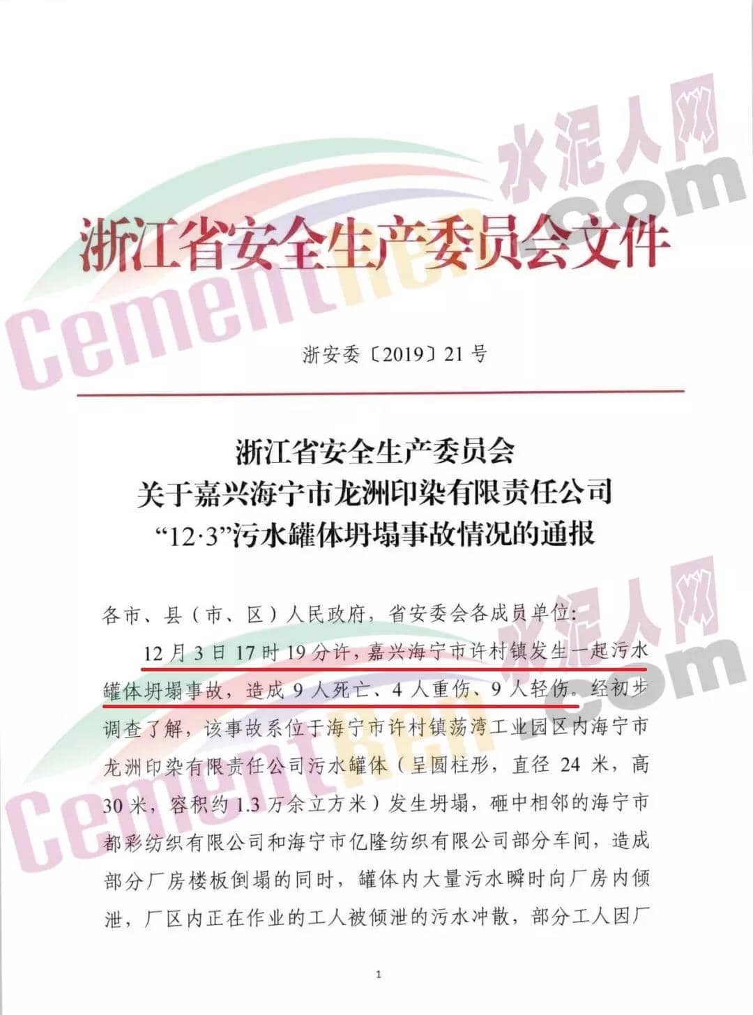 事故回顧:12月3日17時19分許,嘉興海寧市許村鎮(zhèn)發(fā)生一起污水罐體坍塌事故,造成9人死亡、4人重傷、9人輕傷。