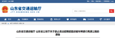 日前,山東省交通運(yùn)輸隊(duì)發(fā)布了《關(guān)于禁止違法超限超載運(yùn)輸車輛同行高速公路的通告》稱,為貫徹落實(shí)國(guó)務(wù)院決策部署,進(jìn)一步加強(qiáng)高速公路違法超限超載治理工作,維護(hù)路產(chǎn)路權(quán)和人民生命財(cái)產(chǎn)安全,根據(jù)《中華人民共和國(guó)公路法》、《中華人民共和國(guó)道路交通安全法》等法律法規(guī)規(guī)定和國(guó)務(wù)院有關(guān)文件要求,決定2019年12月1日8時(shí)起,禁止違法超限超載運(yùn)輸車輛通行。