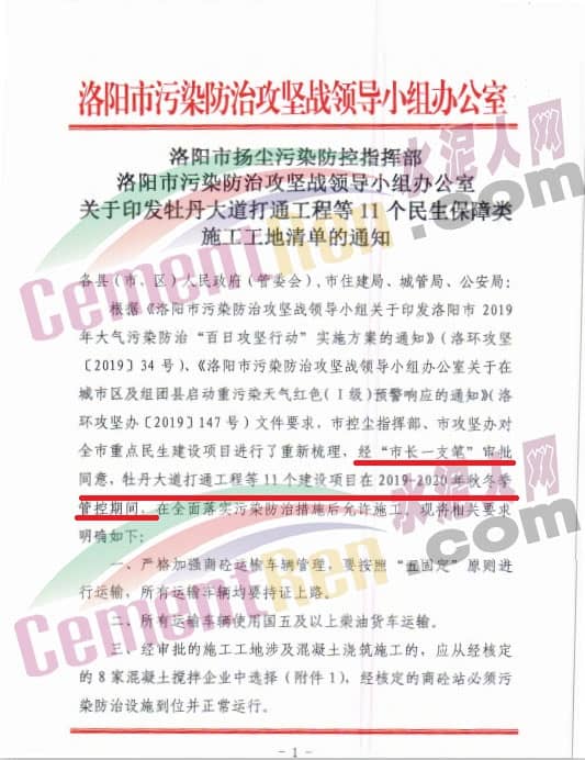 12月6日,河南省洛陽市污染防治攻堅戰(zhàn)領(lǐng)導(dǎo)小組辦公室發(fā)布了《關(guān)于印發(fā)牡丹大道打通工程等11個民生保障類施工工地清單通知》稱根據(jù)《洛陽市污染防治攻堅戰(zhàn)領(lǐng)導(dǎo)小組關(guān)于印發(fā)洛陽市2019年大氣污染防治“百日攻堅行動”實施方案的通知》(洛環(huán)攻堅[2019]34號)、《洛陽市污染防治攻堅戰(zhàn)領(lǐng)導(dǎo)小組辦公室關(guān)于在城市區(qū)及組團(tuán)縣啟動重污染天氣紅色(一級)預(yù)警響應(yīng)的通知》(洛環(huán)攻堅辦[2019]147號)文件要求,市控塵指揮部、市攻堅辦對全市重點民生建設(shè)項目進(jìn)行了重新梳理,經(jīng)“市長一支筆”審批同意,牡丹大道工程等11個建設(shè)項目在2019-2020年秋冬季管控期間,在全面落實污染防治措施后允許施工。相關(guān)要求明確如下:
