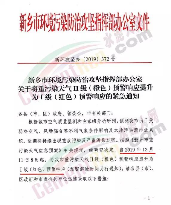 同一天,新鄉(xiāng)牧野區(qū)召開“環(huán)境污染防治攻堅全力沖刺20天誓師大會”。會議明確指出了2019年最后20天環(huán)保形勢的嚴峻,并提出所有建材行業(yè)全部停產(chǎn)停運(國五以上也要停!);輝縣市孟電水泥必須停運,孟電熱力原則上不進煤;
