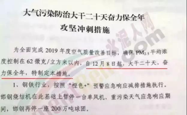 為了保證2019年的空氣質量改善目標,河北省邯鄲市發(fā)布“大氣污染防治大干二十天奮力保全年攻堅沖擊措施”。決定大干20天,從12月8日,全面試行限產(chǎn)停產(chǎn)政策。