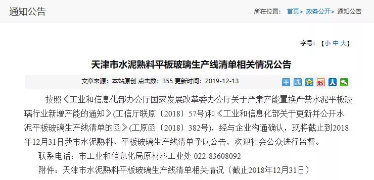按照《工業(yè)和信息化部辦公廳國家發(fā)展改革委辦公廳關(guān)于嚴(yán)肅產(chǎn)能置換嚴(yán)禁水泥平板玻璃行業(yè)新增產(chǎn)能的通知》(工信廳聯(lián)原〔2018〕57號)和《工業(yè)和信息化部關(guān)于更新并公開水泥平板玻璃生產(chǎn)線清單的函》(工原函〔2018〕382號),要求各地區(qū)將截止到上年底的水泥熟料、平板玻璃生產(chǎn)線清單予以公告,并由社會公眾進(jìn)行監(jiān)督。詳情如下: