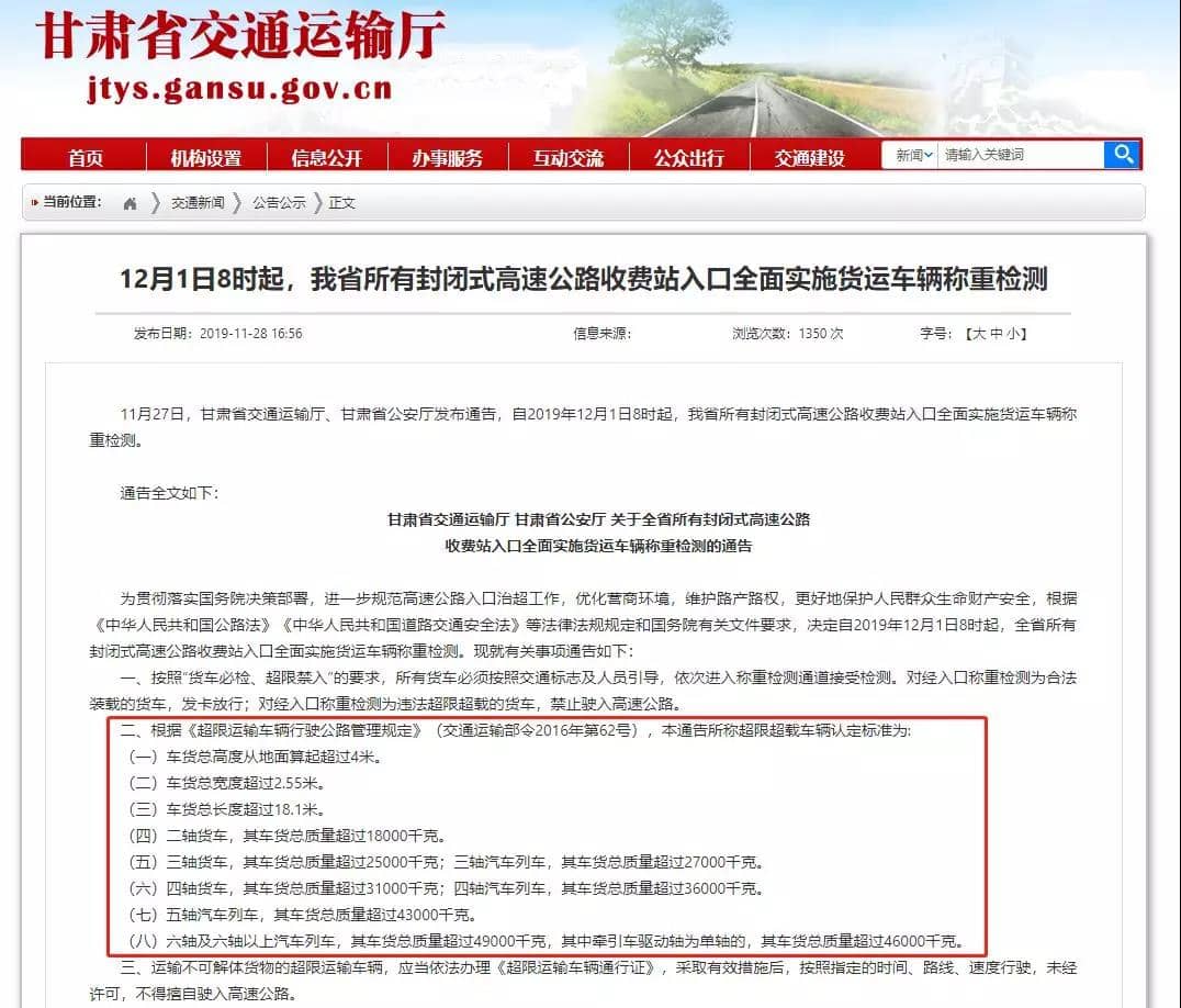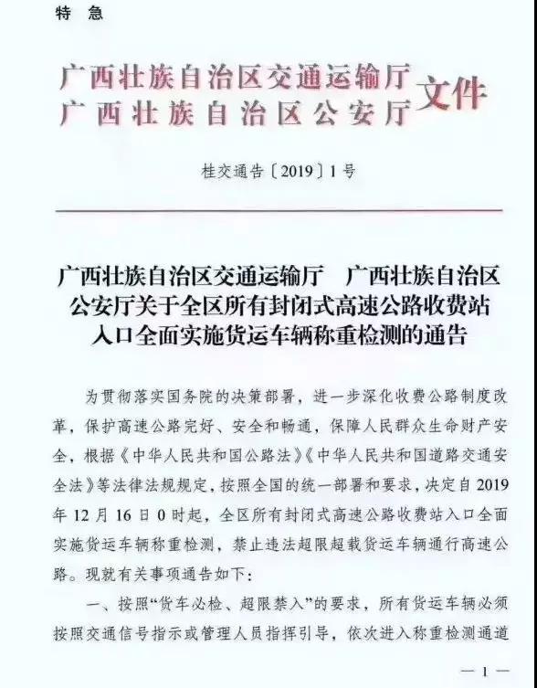 今日(2019年12月16日)將有一件大事發(fā)生,那就是原定在2020年1月1日開始實(shí)施的高速公路入口稱重及強(qiáng)制勸返,將于今日在全國范圍提前實(shí)施!