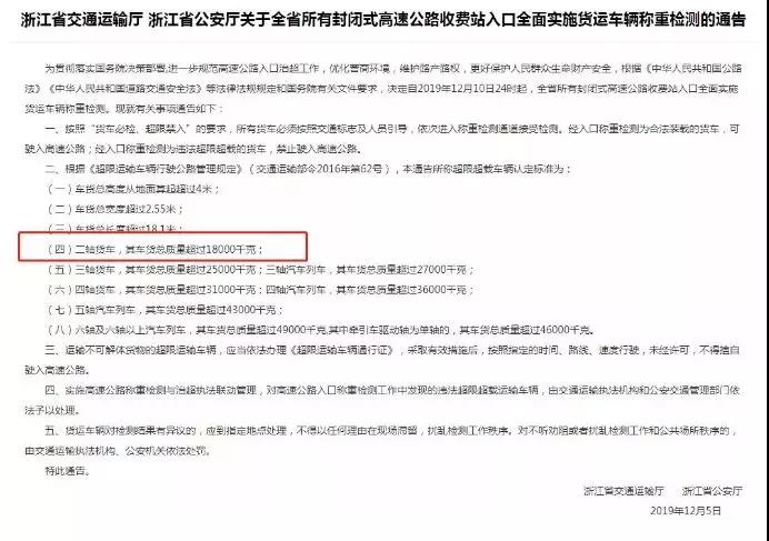 也就是說,入口稱重政策提前了15天!注意,只有入口稱重提前了,貨車按軸收費(fèi)還是按照原定2020年1月1日開始!