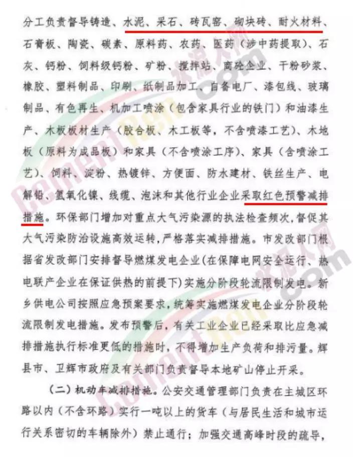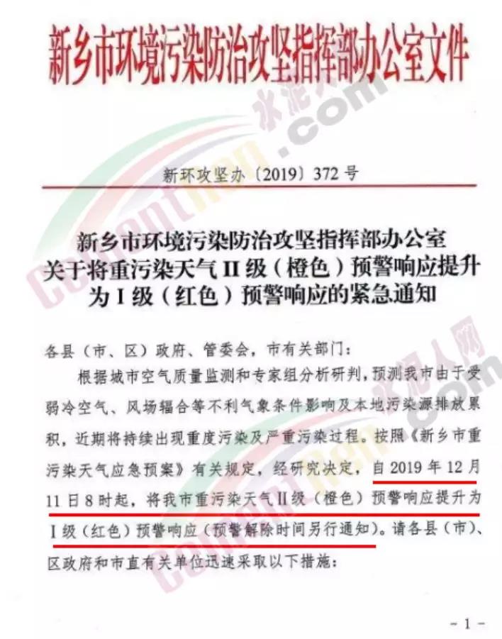 日前,新鄉(xiāng)市環(huán)境防治攻堅指揮部辦公室又發(fā)一文稱,自12月15日12時起,將新鄉(xiāng)市重污染天氣紅色預警(I級)降至橙色預警(II級),但是全市所有建材行業(yè)企業(yè)仍舊繼續(xù)執(zhí)行紅色預警管控措施。