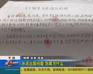 發(fā)現(xiàn)問題之后,張先生找到了經(jīng)銷商,經(jīng)銷商表示他們只負(fù)責(zé)銷售,質(zhì)量問題要和廠里協(xié)商。水泥銷售商和運(yùn)輸商給張先生和姜女士寫了一份關(guān)于銷售水泥的情況說明。情況說明上寫道,并未私自倒裝其他廠生產(chǎn)的劣質(zhì)水泥,若虛假愿承擔(dān)一切責(zé)任。于是,他們找到了水泥生產(chǎn)商——芮城縣同基建材有限公司,銷售部經(jīng)理到現(xiàn)場(chǎng)了解實(shí)際情況之后,給出了解決方案,給兩家分別賠償一部分水泥,對(duì)于這一解決方案張先生和姜女士卻不認(rèn)同。
