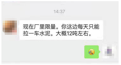 14日,湖南某企業(yè)銷售經(jīng)理通知經(jīng)銷商限量供應,每天只能拉一車水泥約12噸左右。經(jīng)銷商感嘆錢不是問題,問題是沒水泥。