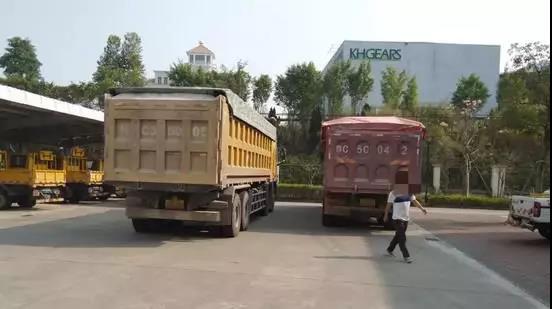 當(dāng)天10點(diǎn)56分,一輛贛C5C042號(hào)紅色重型自卸貨車和一輛黃色贛C3B085號(hào)重型自卸貨車一前一后從珠峰大道笨拙地駛?cè)敫咚伲@得很吃力。車廂雖然都蓋了帆布,但沙石外露,像個(gè)隆起的小土丘,周警官立即把兩車攔下來。