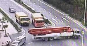 今年4月10日中午12點(diǎn)53分,珠海一司機(jī)在南屏南琴路掉頭,被兩巨無霸猛撞。