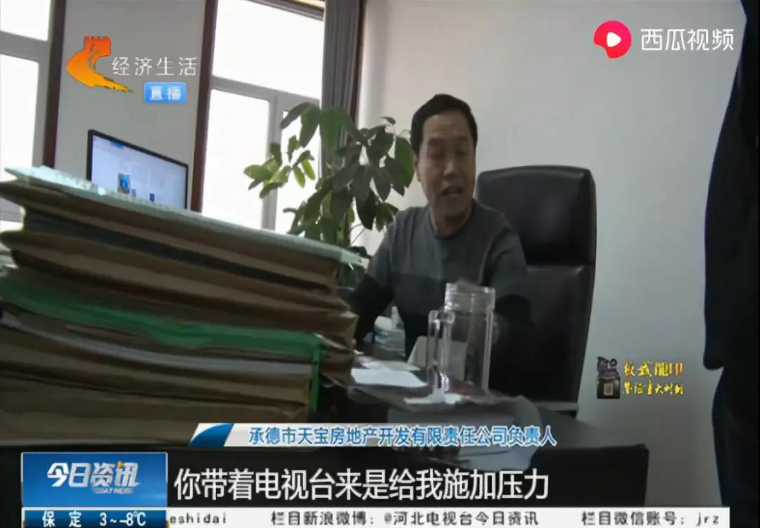 承德市天寶山房地產(chǎn)開(kāi)發(fā)有限責(zé)任公司負(fù)責(zé)人稱,你帶著電視臺(tái)來(lái)是給我們施加壓力,還是想干什么,你帶著電視臺(tái)來(lái)我就答復(fù)不了你。