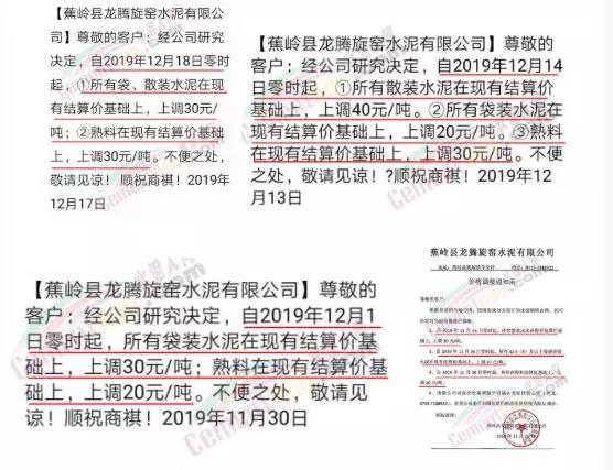 日前,廣東省多家企業(yè)通知上調(diào)水泥價(jià)格,新一輪價(jià)格上漲開啟。其中,梅州皇馬水泥有限公司營銷部通知自2019年12月23日00:00時(shí)起,全品種等級袋/散裝水泥出廠價(jià)格在原價(jià)格基礎(chǔ)上,上調(diào)20元/噸;梅州市塔牌營銷有限公司通知自2019年12月24日零時(shí)起,福建、梅州基地各廠所有水泥出廠結(jié)算價(jià)格在現(xiàn)行價(jià)格基礎(chǔ)上上調(diào)20元/噸。