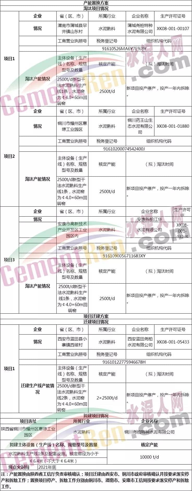 11月27日,陜西省工業(yè)和信息化廳發(fā)布了堯柏特種水泥集團(tuán)有限公司產(chǎn)能置換方案調(diào)整公告。公告稱,按照《國(guó)務(wù)院關(guān)于化解產(chǎn)能嚴(yán)重過(guò)剩矛盾的指導(dǎo)意見(jiàn)》(國(guó)發(fā)[2013]41號(hào))和《工業(yè)部水泥玻璃行業(yè)產(chǎn)能置換實(shí)施辦法》(工信部原〔2017〕337號(hào))精神,以及工信部《關(guān)于你省水泥企業(yè)能否執(zhí)行退城入園政策的復(fù)函》(工原函〔2019〕383號(hào))要求,將堯柏特種水泥集團(tuán)有限公司產(chǎn)能置換方案進(jìn)行調(diào)整公告,置換和遷建項(xiàng)目在新建項(xiàng)目投產(chǎn)前必須關(guān)停退出,投產(chǎn)一年內(nèi)必須拆除。具體方案如下: