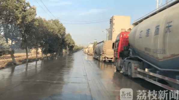 鶴林水泥公司位于鎮(zhèn)江市丹徒區(qū)高資鎮(zhèn),主要生產(chǎn)普通硅酸鹽水泥,根據(jù)知情人的指點(diǎn),2019年12月9號下午,記者來到鶴林水泥公司的大門前,只見不寬的道路上停著幾十臺大型水泥罐車,這些罐車都已經(jīng)裝滿了水泥,等待上路出發(fā)。