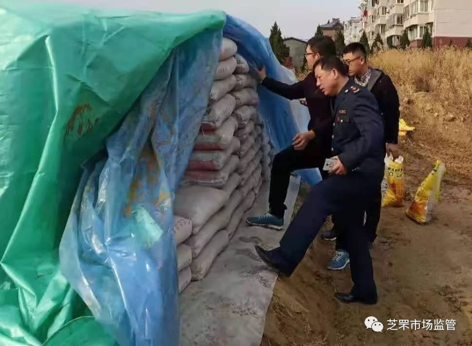 前期摸底完成后,知識產(chǎn)權(quán)和反不正當(dāng)競爭科同志配合黃務(wù)市場監(jiān)管所執(zhí)法人員,立刻聯(lián)系福山公司的質(zhì)量管理人員來現(xiàn)場進(jìn)行取證調(diào)查,經(jīng)查實,該場地內(nèi)共有兩處水泥貯存點,現(xiàn)場辨認(rèn)、清點發(fā)現(xiàn),其中一處系正品水泥,另外一處系假冒“盾石”牌袋裝水泥。