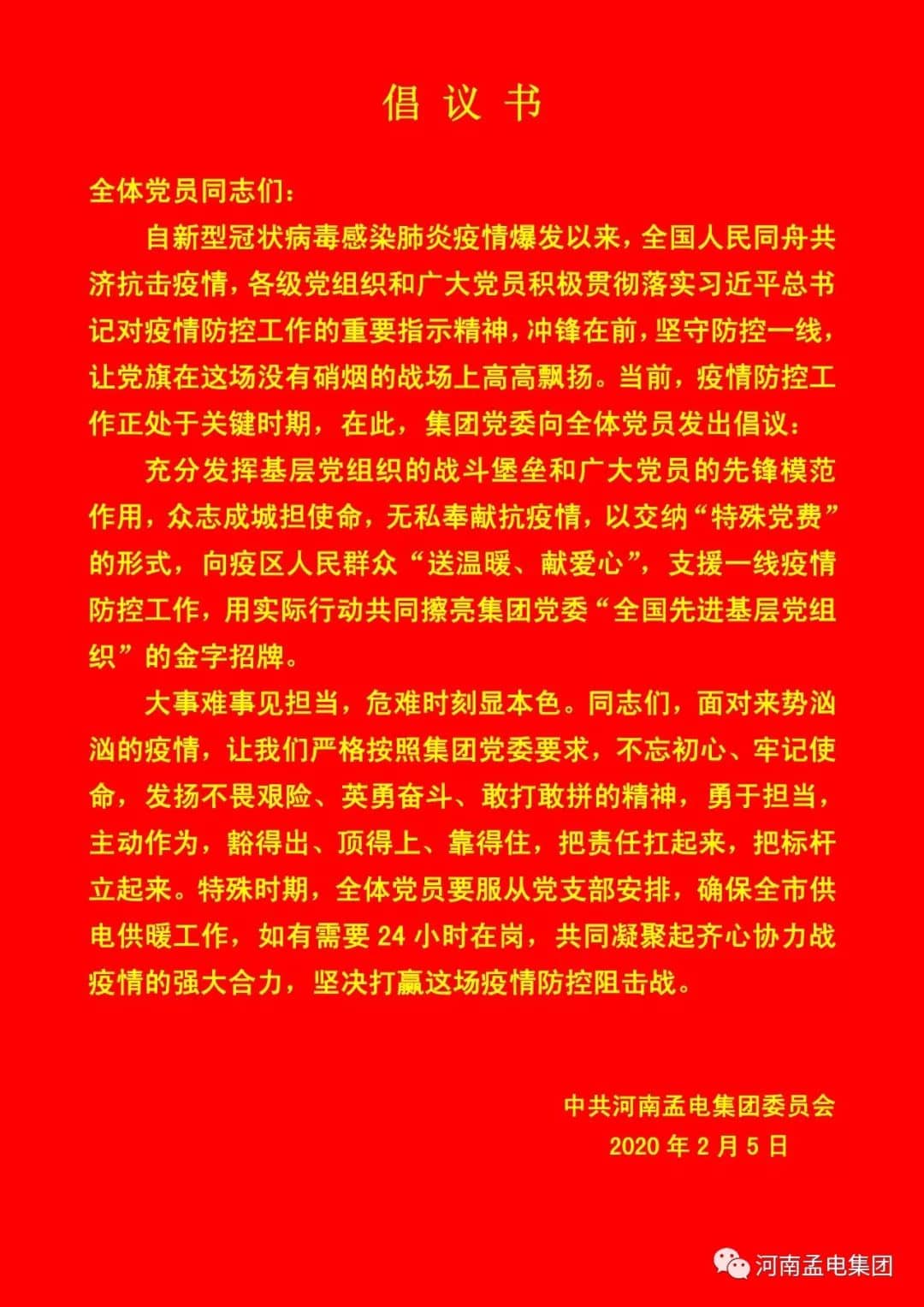 2月5日上午,孟電集團黨委書記、董事長范海濤,將集團208名黨員主動交納的20萬元黨費交到了市委組織部,助力疫情防控工作。