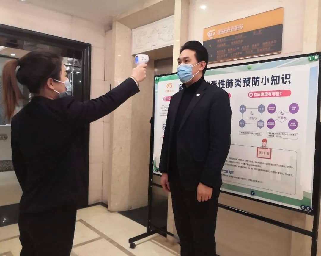 自新冠肺炎疫情發(fā)生以來,春江集團(tuán)迅速成立以張洪梅董事長為組長的疫情防控工作領(lǐng)導(dǎo)小組,制定下發(fā)《新冠病毒應(yīng)急預(yù)案》、《春江集團(tuán)復(fù)工疫情防控工作方案》等文件,嚴(yán)格落實防控措施,購買口罩、防護(hù)服、消毒粉、酒精、紅外測溫槍、溫度計等防護(hù)物資。除必要的值班人員外,其余人員一律不得進(jìn)廠,重點崗位人員穿防護(hù)服上崗,每日發(fā)放口罩,每日兩次量體溫,就餐采取一人一桌,同向就餐。組建由中高層領(lǐng)導(dǎo)、黨員、退役軍人為骨干的突擊隊,每日對廠區(qū)、辦公樓、宿舍、餐廳等區(qū)域進(jìn)行消毒并做好記錄。保衛(wèi)部門嚴(yán)格人員出入登記、體溫測量及酒精消毒。