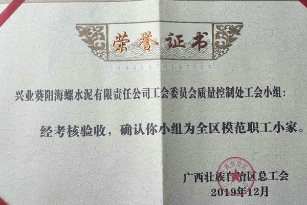 近日,自治區(qū)總工會(huì)公布全區(qū)模范職工之家、全區(qū)模范職工小家名單,全區(qū)105個(gè)基層工會(huì)榮獲“2019年全區(qū)模范職工小家”榮譽(yù)稱號(hào),興業(yè)葵陽海螺水泥有限責(zé)任公司工會(huì)委員會(huì)質(zhì)量控制處工會(huì)小組獲此殊榮,這是公司首獲此項(xiàng)榮譽(yù)。