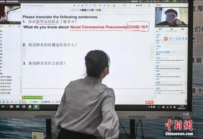 資料圖:廣州一老師正在通過(guò)“網(wǎng)絡(luò)智慧教學(xué)課堂”上英語(yǔ)課
