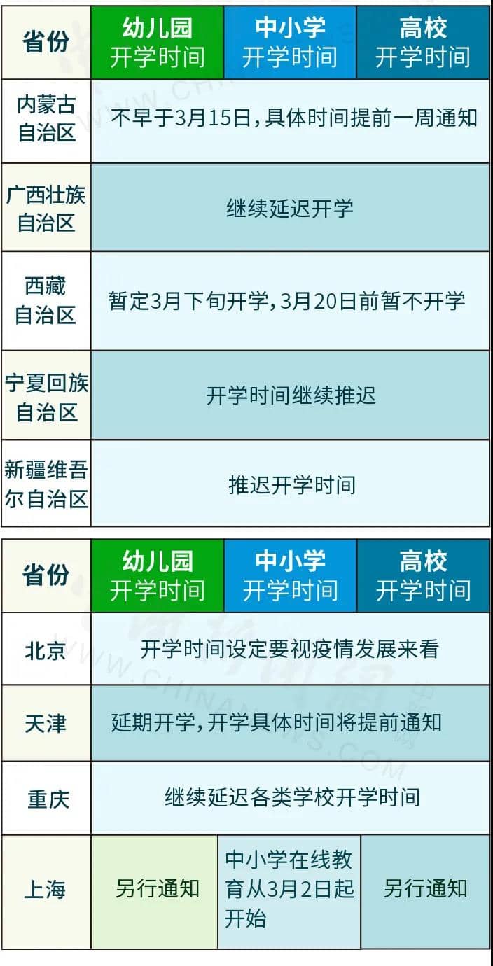 例如,2月27日,貴州省委、省政府研究確定:該省高三年級(jí)和初三年級(jí)學(xué)生3月16日正式開(kāi)學(xué),其他學(xué)段、高中初中其他年級(jí)開(kāi)學(xué)時(shí)間將視下一階段疫情防控情況,經(jīng)科學(xué)評(píng)估后再行確定并向社會(huì)公布。