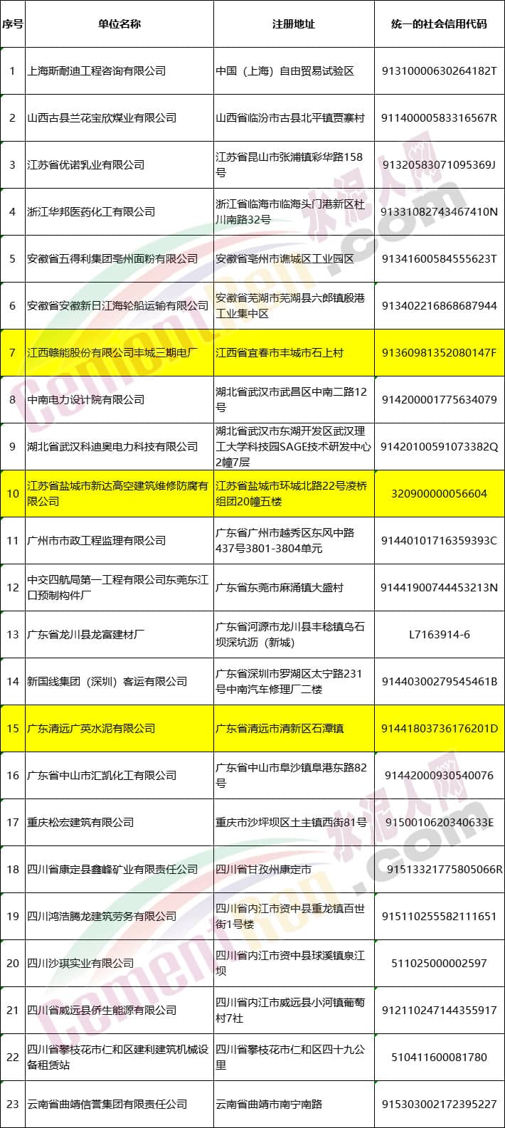 23家移出安全生產(chǎn)失信聯(lián)合懲戒“黑名單”單位名單中包括名單中,包括位于江西省宜春市豐城市石上村的江西贛能股份有限公司豐城三期電廠;位于廣東省清遠市清新區(qū)石潭鎮(zhèn)廣東清遠廣英水泥有限公司等企業(yè)。