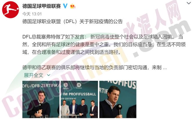 3月9日下午,德國足球職業(yè)聯(lián)盟DFL總裁塞弗特發(fā)表最新聲明稱,德甲和德乙聯(lián)賽的俱樂部將繼續(xù)與當?shù)氐呢撠?zé)部門密切溝通,來制定之后比賽日的安排。同時毫無疑問,本賽季要像計劃中的一樣在5月中旬結(jié)束。