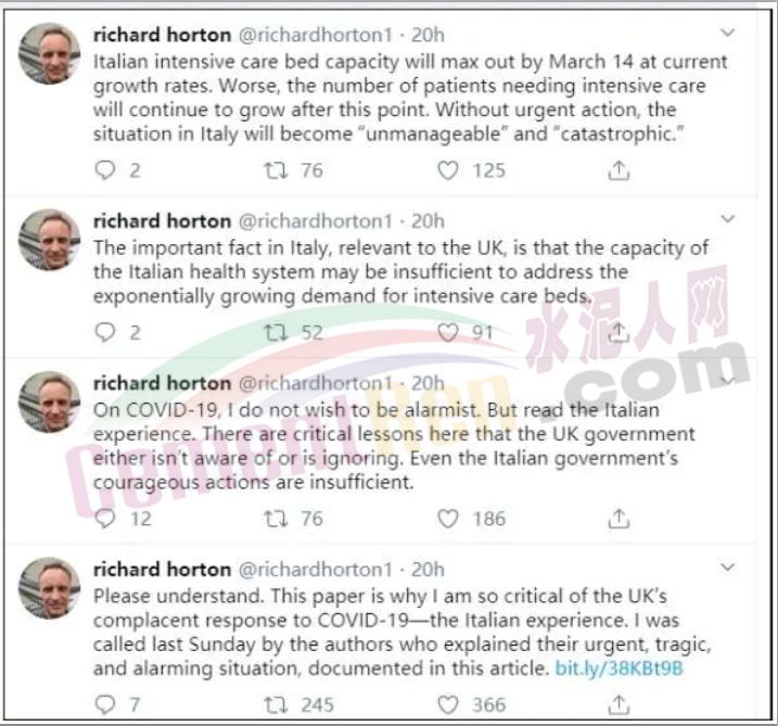 所以,他再次呼吁英國(guó)政府吸取意大利正在遭受的經(jīng)驗(yàn)教訓(xùn),避免慘痛的結(jié)果,必須立刻對(duì)公眾采取關(guān)閉公共場(chǎng)所和保持人際距離的相關(guān)措施。