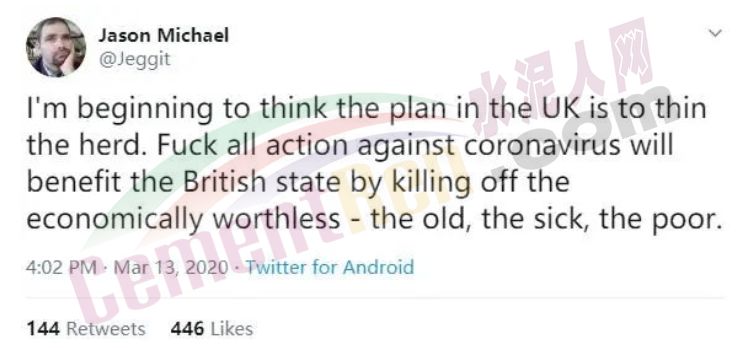 最后,不少英國(guó)網(wǎng)民在從媒體上得知政府這一“人群免疫”的政策后,也都對(duì)這一策略感到不解、震驚和憤怒。