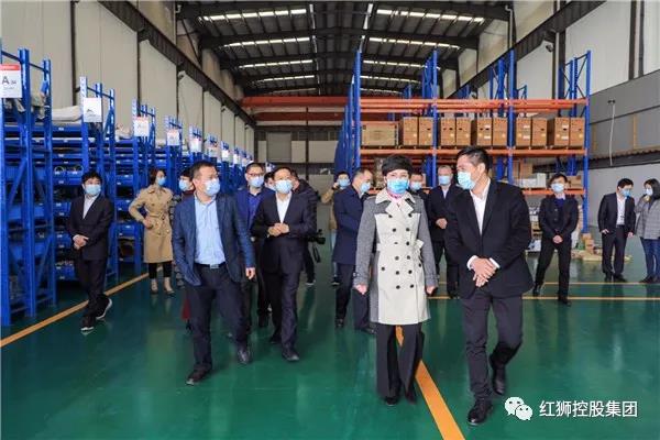 同日,下午,金華市委副書記、政法委書記陳玲玲到紅獅供應鏈開展“三服務”活動,現場指導疫情防控和復工復產。