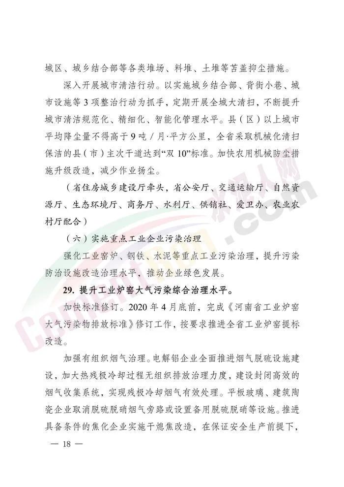 8.2020年4月底前,完成《河南省工業(yè)爐窯大氣污染物排放標準》修訂工作,推進工業(yè)爐窯提標改造。