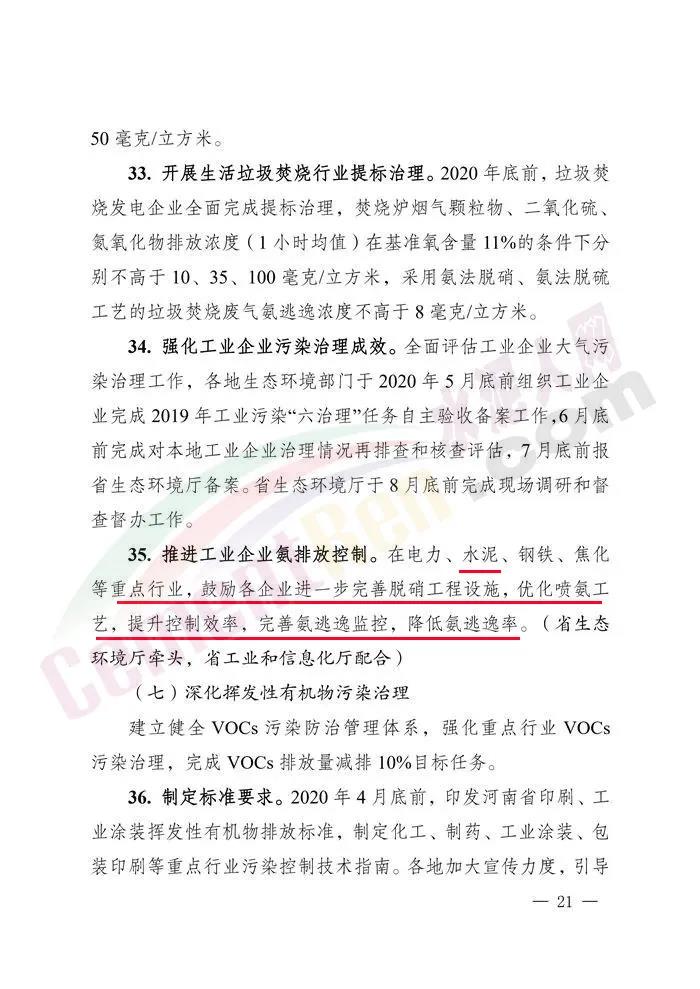5.在水泥等重點行業(yè),鼓勵各企業(yè)進一步完善脫硝工程設施,優(yōu)化噴氨工藝,提升控制效率,完善氨逃逸監(jiān)控,降低氨逃逸率。
