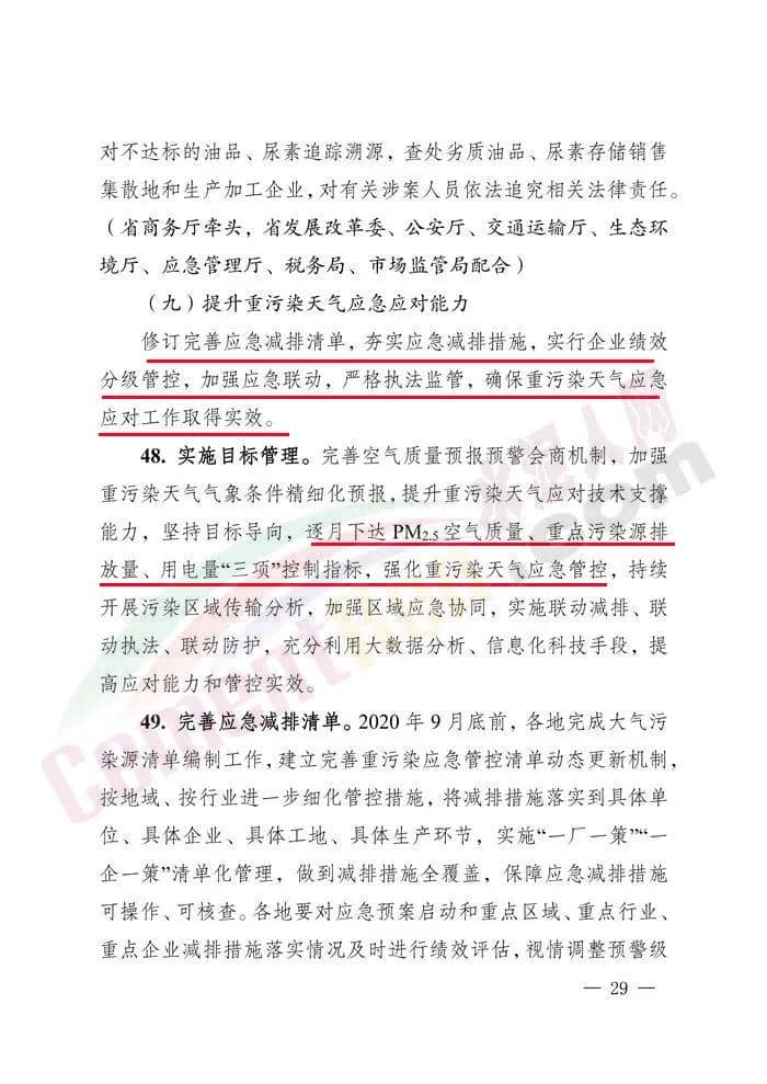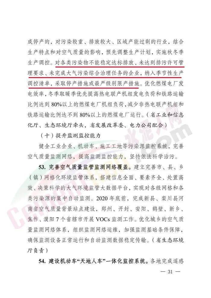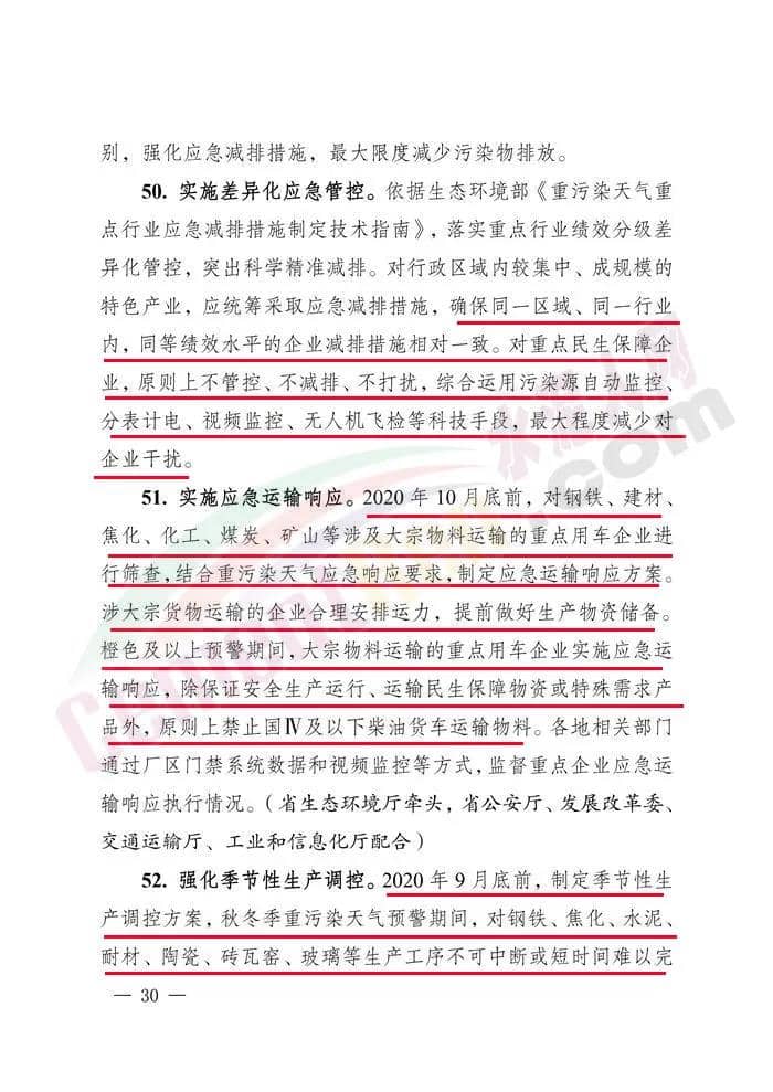 7.2020年9月底前,制定季節(jié)性生產調控方案,秋冬季重污染天氣預警期間,對水泥等生產工序不可中斷或短時間內難以完成停產的,對污染較重、排放較大、區(qū)域產能過剩的行業(yè),結合生產特點和對空氣質量的影響,預先調整生產計劃,實施秋冬季生產調控。