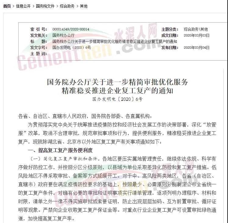 3月初,國(guó)務(wù)院辦公廳發(fā)布《關(guān)于進(jìn)一步精簡(jiǎn)審批優(yōu)化服務(wù)精準(zhǔn)穩(wěn)妥推進(jìn)企業(yè)復(fù)工復(fù)產(chǎn)的通知》(國(guó)辦發(fā)明電〔2020〕6號(hào))為貫徹落實(shí)黨中央關(guān)于統(tǒng)籌推進(jìn)疫情防控和經(jīng)濟(jì)社會(huì)發(fā)展工作的決策部署,深化“放管服”改革,取消不合理審批,規(guī)范審批事項(xiàng)和行為,提供便利服務(wù),精準(zhǔn)穩(wěn)妥推進(jìn)企業(yè)復(fù)工復(fù)產(chǎn),全國(guó)工地建設(shè)復(fù)工將全面鋪開(kāi),各省市不得設(shè)置障礙阻止復(fù)工。