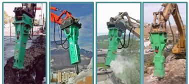 其二為國際著名鑿巖設備公司, 法國蒙特貝公司的液壓破碎錘,和挖掘機配套使用的鑿巖鉆機具, 見圖