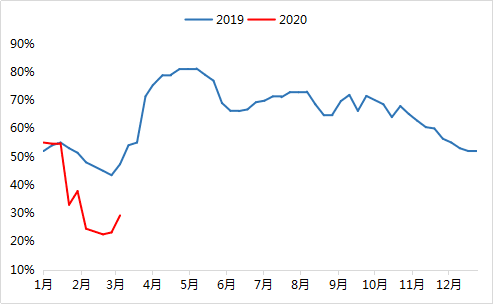 據(jù)百年建筑網(wǎng)調(diào)研174家水泥企業(yè)發(fā)貨情況,3月2—8日發(fā)貨量123.5萬噸,環(huán)比上周增長45.4%,同比減少70%,主要因去年春節(jié)時(shí)間在2月初,到3月中旬水泥企業(yè)基本達(dá)到正常銷售水平,按照以往經(jīng)驗(yàn)來看,今年春節(jié)時(shí)間相對(duì)提前10天左右,水泥企業(yè)達(dá)到正常銷售水平的時(shí)間應(yīng)為3月初,但今年受疫情的影響,下游企業(yè)開工時(shí)間延后,導(dǎo)致此時(shí)水泥發(fā)貨量較去年同期減少70%,預(yù)計(jì)達(dá)到正常發(fā)貨水平的時(shí)間需等到三月中旬以后,時(shí)間節(jié)點(diǎn)上與去年基本一致。
