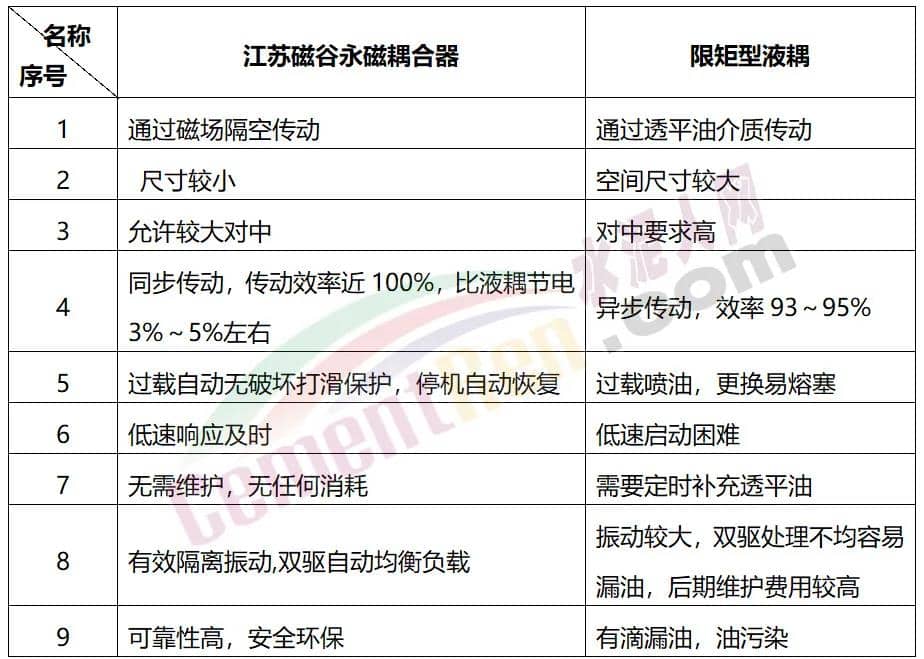 那么對(duì)于水泥企業(yè)來說,永磁耦合器和限矩型液耦之間有什么區(qū)別呢?水泥企業(yè)應(yīng)該如何選擇耦合器呢?今天全國第一家致力于大轉(zhuǎn)矩(1500N·m以上,最大可達(dá)480000N·m)永磁耦合聯(lián)軸(保護(hù))器應(yīng)用研究和開發(fā)的企業(yè),江蘇磁谷科技股份有限公司(以下簡稱“江蘇磁谷科技”)對(duì)于兩種耦合器的看法。