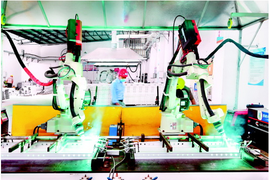 鋁合金模板作為一項(xiàng)新型模板技術(shù),以其突出的生態(tài)環(huán)保和經(jīng)濟(jì)優(yōu)勢(shì),取代了傳統(tǒng)竹木模板得到廣泛應(yīng)用。圖為5月8日,遵義茍江經(jīng)濟(jì)開發(fā)區(qū)一家企業(yè)的機(jī)器人在自動(dòng)焊接標(biāo)準(zhǔn)化鋁模板。記者 李楓 攝