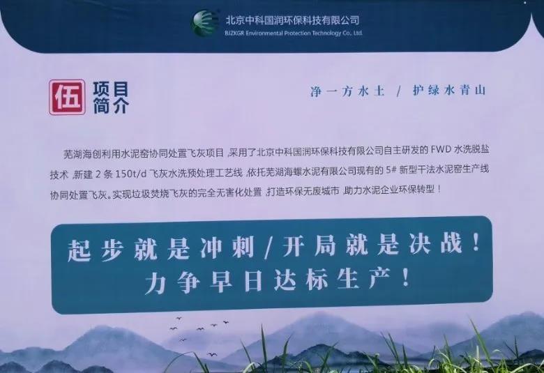 2020年5月20日,北京中科國(guó)潤(rùn)環(huán)保科技有限公司承建的蕪湖海創(chuàng)利用水泥窯協(xié)同處置飛灰項(xiàng)目安裝工程正式開工。