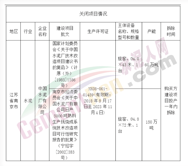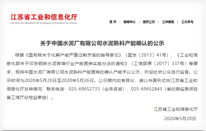 關(guān)于中國(guó)水泥廠有限公司水泥熟料產(chǎn)能確認(rèn)的公示